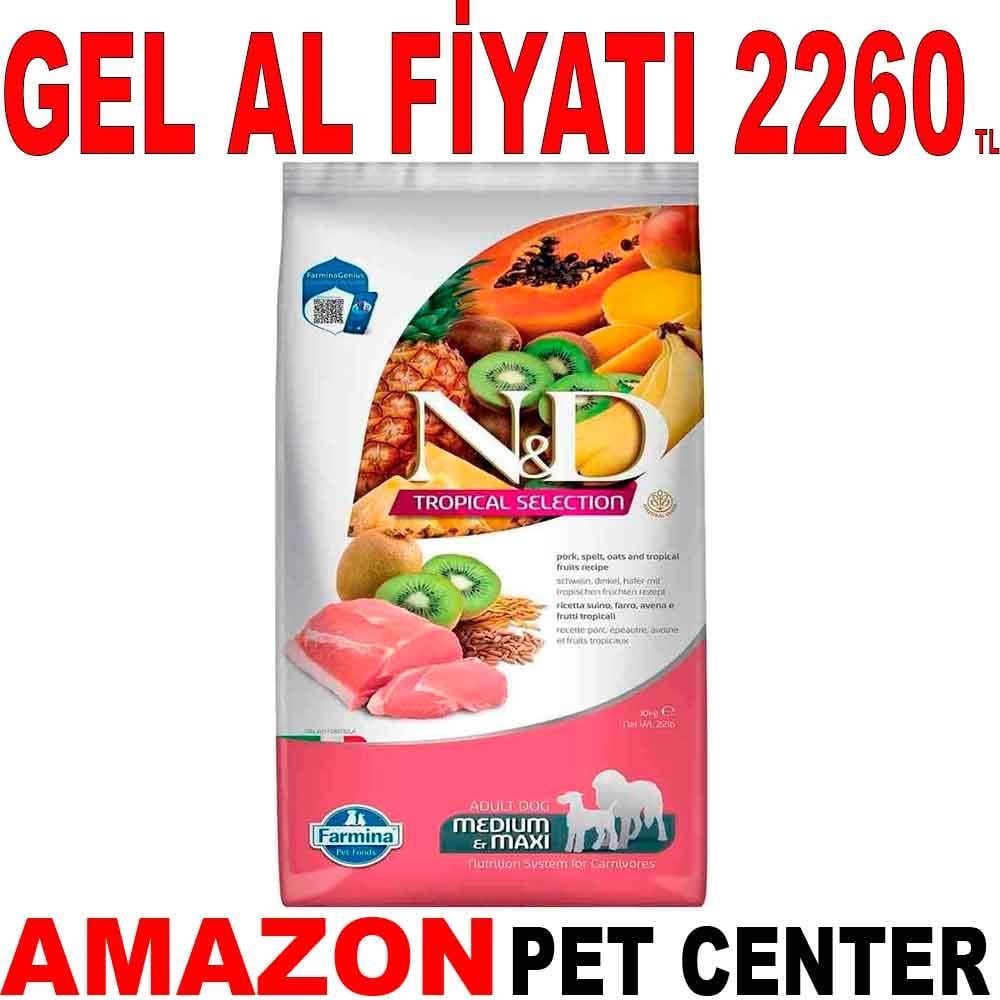 N&D Tropical Domuz Etli Orta ve Büyük Irk Yetişkin Köpek Maması, 1 yaş ve üzeri tüm yetişkin köpekler için özel olarak formüle edilmiştir. Köpeğinizin yüksek protein ihtiyacını karşılayan N&D Tropical Domuz Etli Orta ve Büyük Irk Yetişkin Köpek Maması, %90 oranında hayvansal protein kaynakları içermektedir.