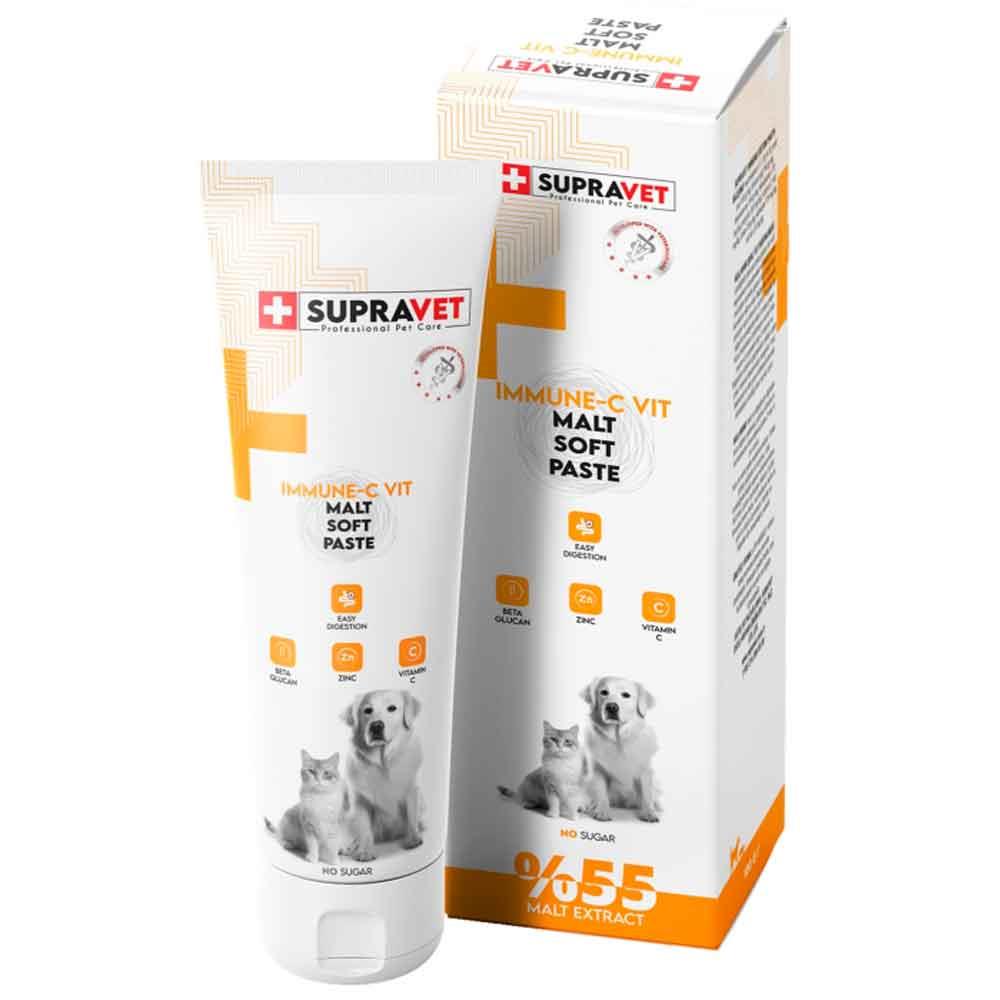Supravet Immune C Malt Paste, zengin içeriği ile kedi ve köpekler için hem bağışıklık güçlendirici hem de genel sağlık destekleyici etkiler sunar. Lezzetli formülü sayesinde tüketimi kolay, etkisi yüksek bir takviyedir.